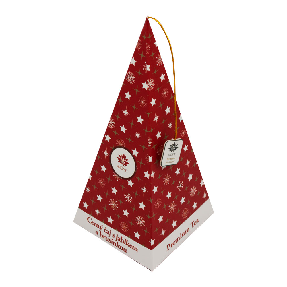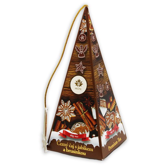 Vysokokvalitný lahodný čierny čaj s príchuťou jablka a brusníc. Brusnicové listy sa už dlho používajú v ľudovom liečiteľstve s priaznivými účinkami. Čaj je balený v luxusnej pyramídovej škatuľke s vianočným motívom. S prichádzajúcimi chladnejšími dňami môže byť pitie tohto čaju teraz chvíľkou uvoľnenia a pohody.