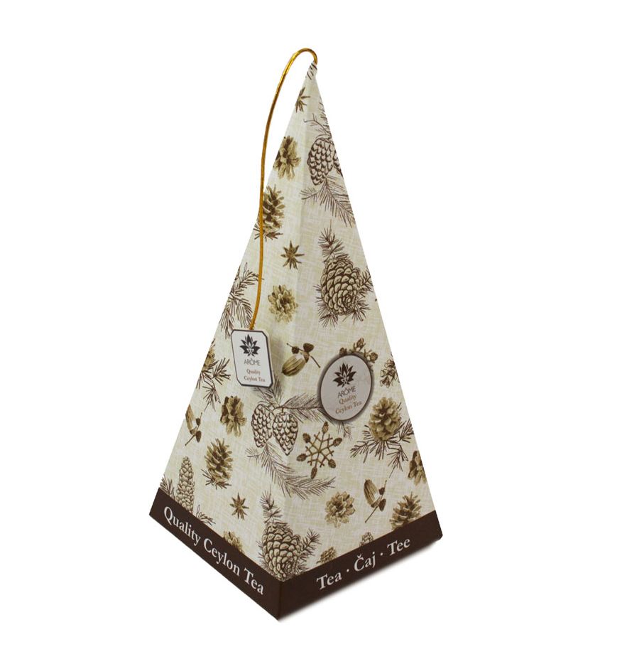 Vysokokvalitný lahodný ovocný čaj zo Srí Lanky s príchuťou niekoľkých druhov exotického ovocia prebudí vašu predstavivosť a túžbu spoznávať ostrov Srí Lanka - perlu v Indickom oceáne. V krásnej pyramídovej škatuľke s vianočnými motívmi sa ukrýva 20 praktických čajových vrecúšok. Poteší každého, kto ho nájde pod vianočným stromčekom.