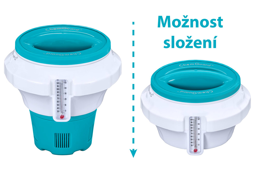 Plavák na bazénovú chémiu sa pohybuje po povrchu bazéna, čím podporuje rovnomerné dávkovanie prípravku. Pohybom kontrolnej mriežky možno regulovať rýchlosť rozpúšťania vložených tabliet. Postupné uvoľňovanie chlóru zabezpečuje stálu dezinfekciu bazéna počas celej sezóny.