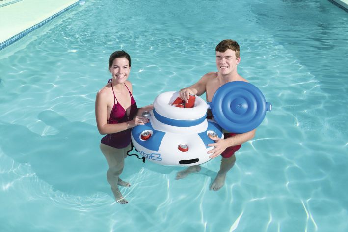 Chladené nápoje a horúce letné počasie? Žiadny problém s chladivým plávajúcim barom! Plávajúci bar má 6 držiakov na vaše obľúbené nápoje a 12-litrovú nádobu na ľad alebo nápoje.