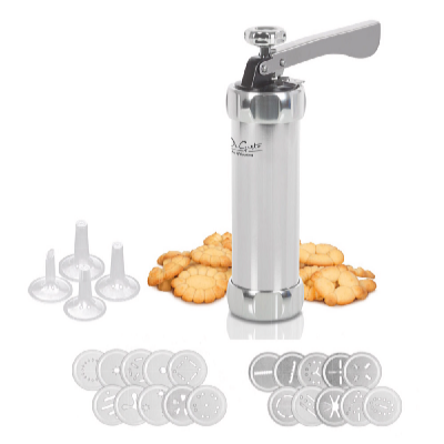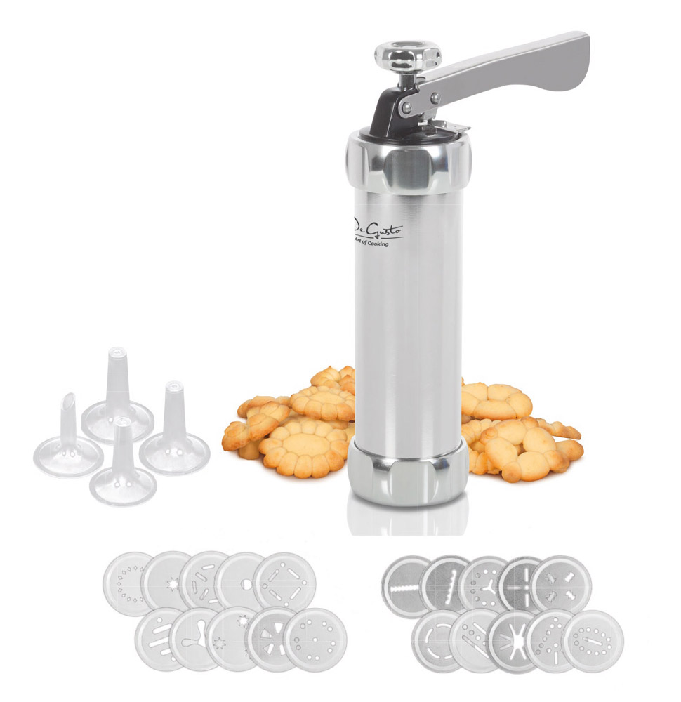 - Obsahuje 20 vymeniteľných tvarovacích nástavcov na výrobu rôznych tvarov sušienok a cukroviniek