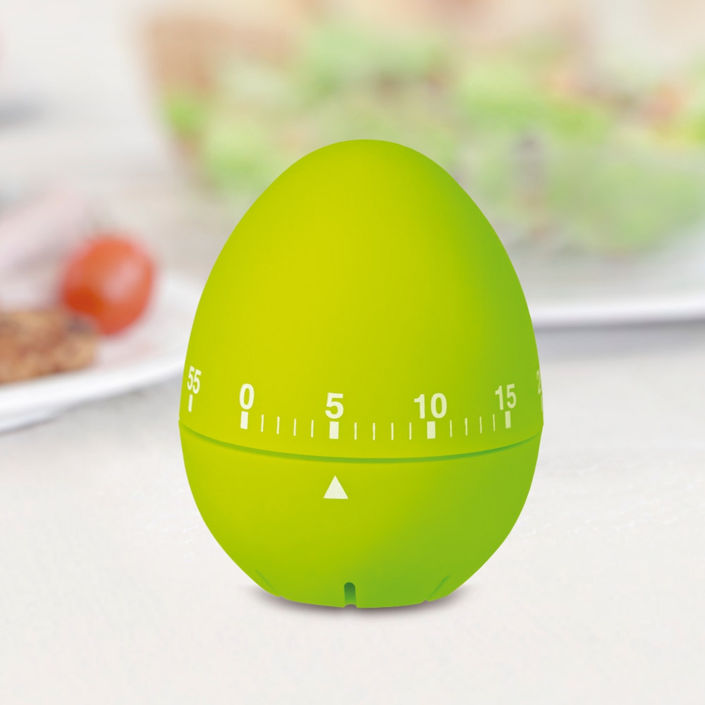 Mechanická minútka z príjemného materiálu - silikónu - v tvare vajíčka. Kuchynská minútka je veľmi praktickým pomocníkom pri varení - stačí ňou otočiť a nastaviť požadovaný čas (0-60 min). Klasický zvukový signál po uplynutí času vás upozorní, že jedlo je hotové.