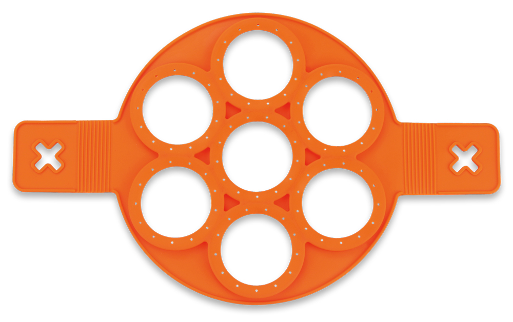 Stačí položiť formu na panvicu, naliať cesto alebo vajíčko do každého otvoru a počkať, kým bude jedna strana hotová.