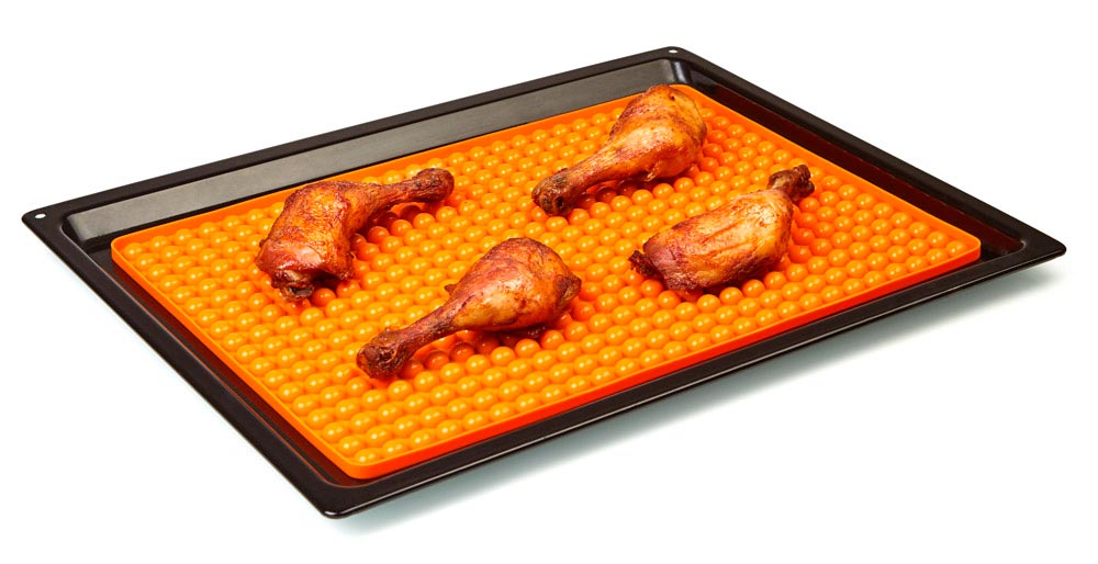 Silikónová podložka na pečenie je skvelým kuchynským pomocníkom, ktorý vám veľmi uľahčí pečenie. Vďaka silikónovej podložke neleží pripravované jedlo v tuku, ale na výstupkoch silikónovej podložky. Silikónová podložka zároveň umožňuje cirkuláciu vzduchu pod jedlom, vďaka čomu je jedlo šťavnaté, rovnomerne prepečené, veľmi zdravé a chutné!