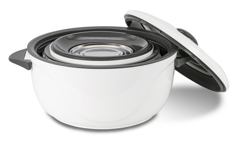 - 2-dielna súprava - misky s objemom 2 a 4 litre vrátane pokrievok