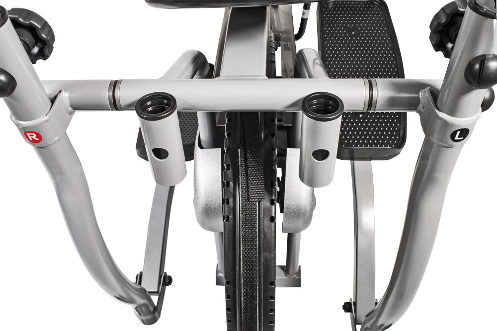 Orbitrek má 2 polohy rukovätí - počas cvičenia je možné striedať pohyblivé rukoväte s pevnými, výška rukovätí je nastaviteľná. Maximálna hmotnosť cvičenca je 120 kg.