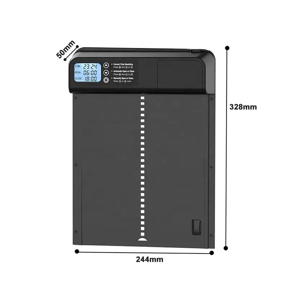 Už vás nebaví ranný náhlenie a večerné starosti s otváraním a zatváraním kurníka? S týmito automatickými programovateľnými dvierkami ku kurníku získate pokoj a istotu, že sú vaše sliepky v bezpečí, nech už ste kdekoľvek! Dvierka sa automaticky otvoria za svitania a zatvoria po súmraku. Už žiadne starosti s dochádzaním ku kurníku. Náš systém je navrhnutý tak, aby spoľahlivo ochránil vaše sliepky pred líškami, kunami a ďalšími nočnými predátormi. Pevná konštrukcia a automatické zatváranie v nastavený čas zaistí, že vaše kŕdeľ bude v bezpečí po celú noc. Čas zatvárania a otvárania si ľahko nastavíte podľa svojich potrieb. Pokiaľ sa počas spúšťania dvierok objaví prekážka, ktorá im kladie odpor, automaticky zastaví zatváranie, a okamžite sa znovu otvoria. Po niekoľkých sekundách sa dvierka automaticky pokúsia znova zavrieť.