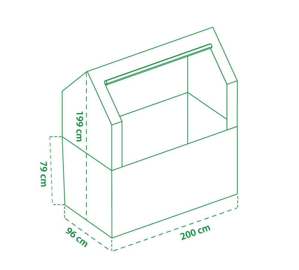 - Rozmer: 200 x 79/199 x 100 cm (dĺžka x výška záhona / celková výška s fóliovníkom x hĺbka)