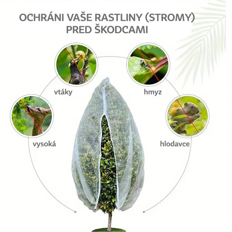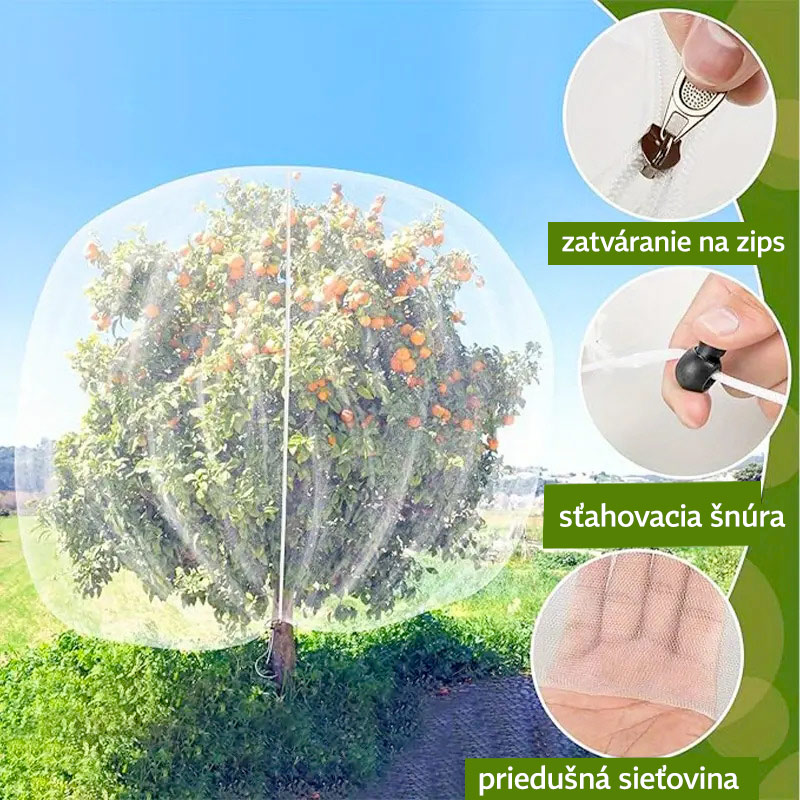 Sieťka proti vtákom na stromy je ideálna pre kríky a menšie ovocné stromy. Ochranná sieť chráni pred vtákmi, hmyzom, hlodavcami, ale aj pred ohryzom od srnčej zveri. Sieť proti vtákom má sieťovú konštrukciu, ktorá umožňuje priechod dažďa a vzduchu.