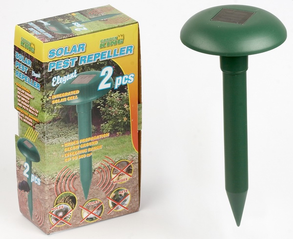 Odpudzovače krtkov, hrabošov, hryzcov fungujú na princípe šírenia ultrazvukových vĺn pod zemou (účinná plocha až 500 m² - môže sa meniť v závislosti na vlastnostiach pôdy), frekvencia 400-1000 Hz, vibrácie sa opakujú každých 40 sekúnd