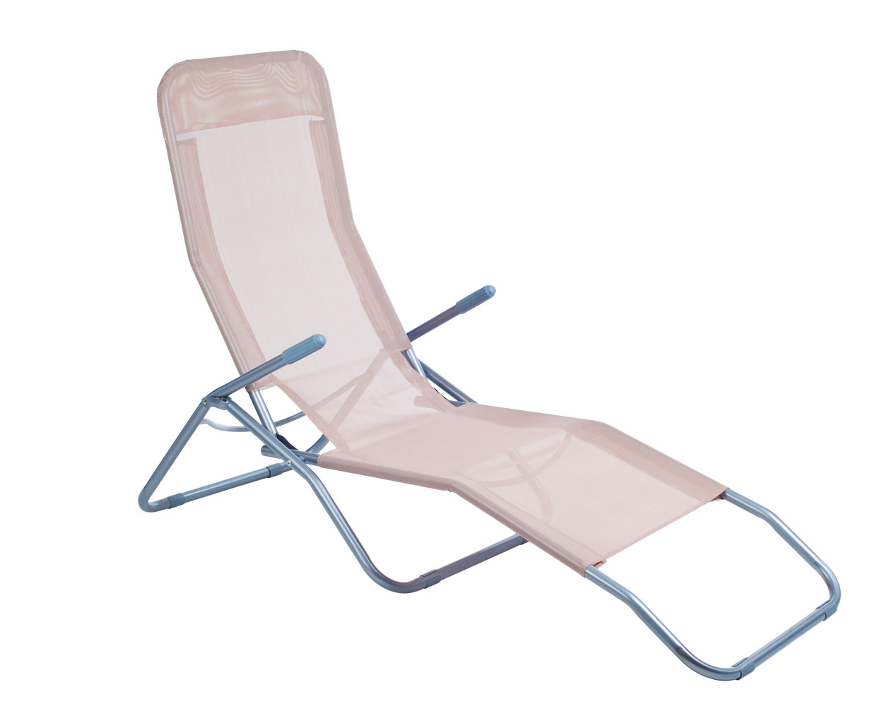 Skládací zahradní lehátko s područkami, materiál ocel (povrchová úprava prášková barva stříbrná) a umělá tkanina (polyester), nenasakující vodu. Zahradní lehátko lehátko je velmi pohodlné, nenáročné na skladování, vhodné na terasy, zahradu nebo kempování.
