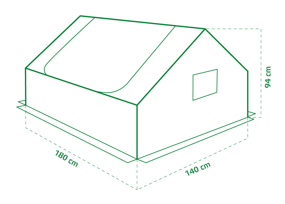 (1x veľké rolovacie okno + sieťka proti hmyzu na zips, 2x malé okno) - materiál - oceľový rám s povrchovou úpravou (priemer rúr 16 mm), PE plachta (135 g/m2)