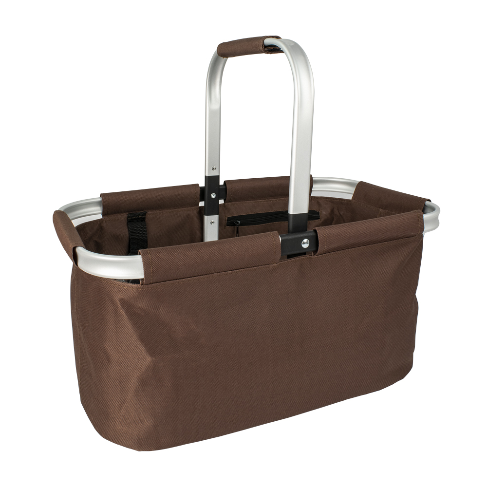 Skladací nákupný košík môžete použiť na každodenné nákupy, ale je vhodný aj na pikniky, na záhradu, chatu alebo chalupu. Nákupný košík je vyrobený z pevnej umývateľnej tkaniny a ľahkej hliníkovej konštrukcie. Vo vnútri nákupného košíka sa nachádza praktické vrecko na zips. Rukoväť s mäkkou rukoväťou poskytuje pohodlie pri prenášaní. Veľkou výhodou nákupného koša je skladací mechanizmus, ktorý umožňuje rýchle zloženie a rozloženie. Skladací nákupný košík má maximálnu nosnosť 10 kg.
