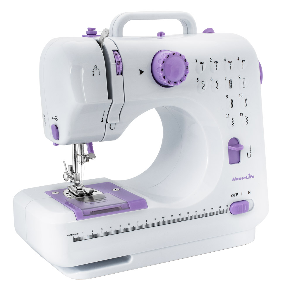 - 12 druhov stehov (rovný, pružný, 4-kroková gombíková dierka)
