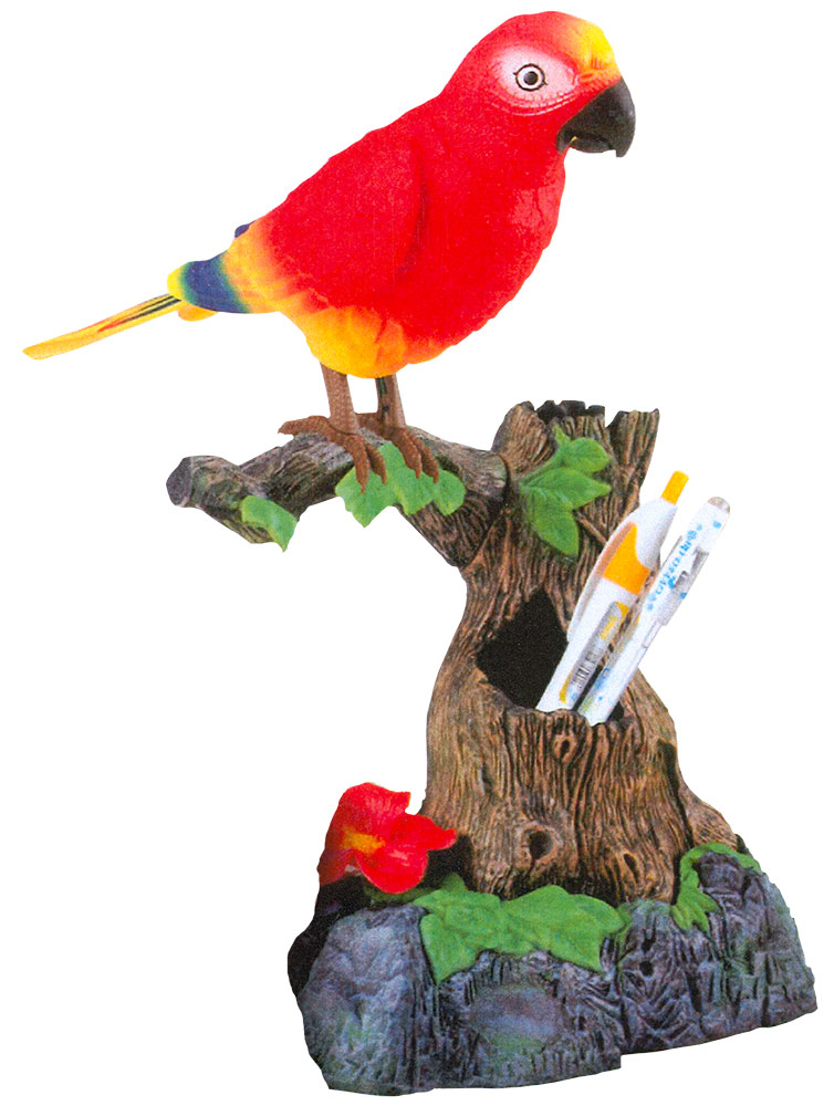 Originálny stojan na ceruzky s hovoriacim vtákom.