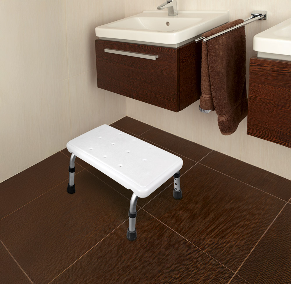 Teleskopický pomocný schodík uľahčuje vstup do vane, môžu ju používať deti, aby sa ľahšie dostali do umývadla, alebo dospelí s pohybovým obmedzením na ľahší prístup do vane, sprchy atď. Je vybavená hygienickým protišmykovým stúpadlom so zaoblenými hranami a protišmykovými gumovými koncovkami nôh.