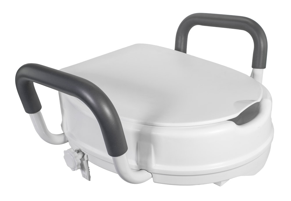 Zvýšené toaletné sedadlo s madlami - nadstavec na WC misu - ideálne pre osoby s ťažkosťami pri sedení nízko a vstávanie z toalety bežnej výšky. Maximálne pohodlie, jednoduché použitie.