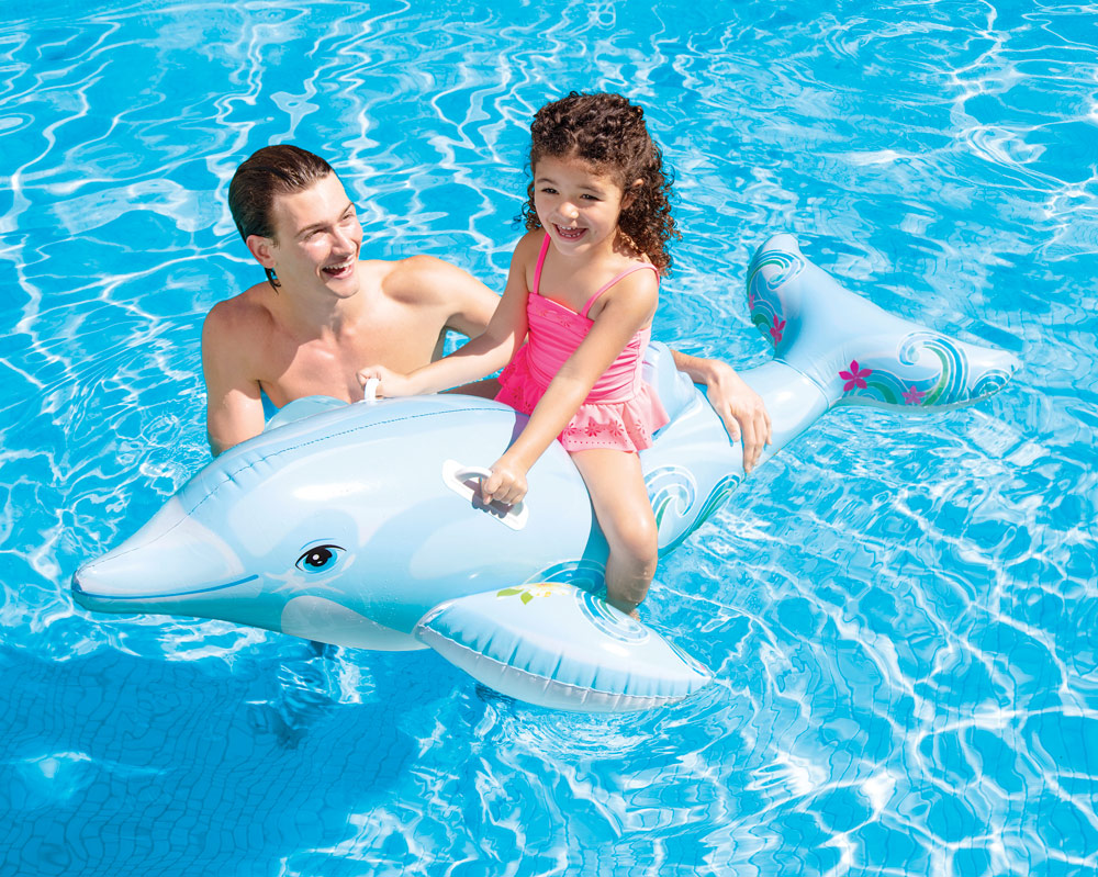 Nafukovací delfín má dve pevné držadlá pre pohodlné uchytenie. Nafukovací delfín je vhodný pre bazény, rybníky aj more.