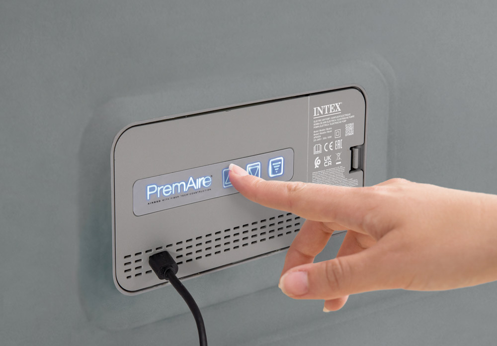 Nafukovacia posteľ Air Bed PremAire II Queen má zabudovanú špeciálnu digitálnu pumpu, ktorú možno ovládať manuálne alebo cez bluetooth pomocou smartfónov, tabletov atď.