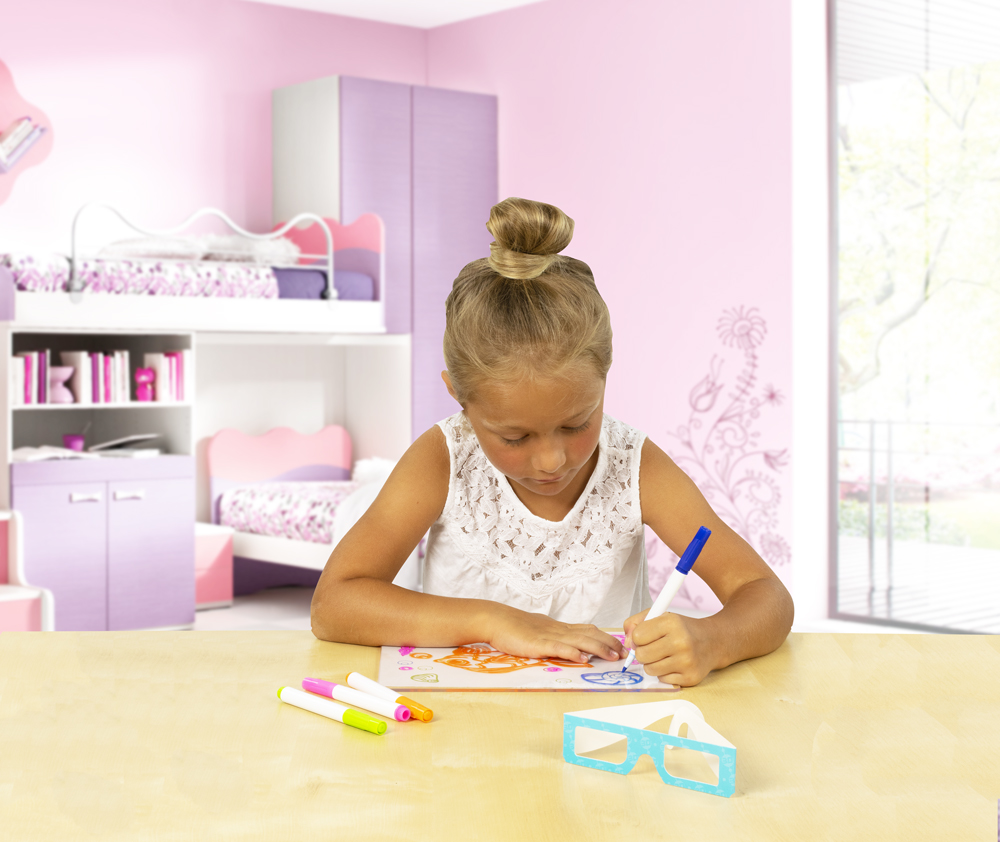 - Po nasadení okuliarov a rozsvietení svetla kresby získajú 3D efekt