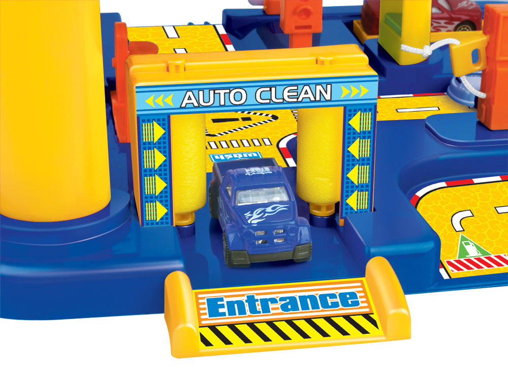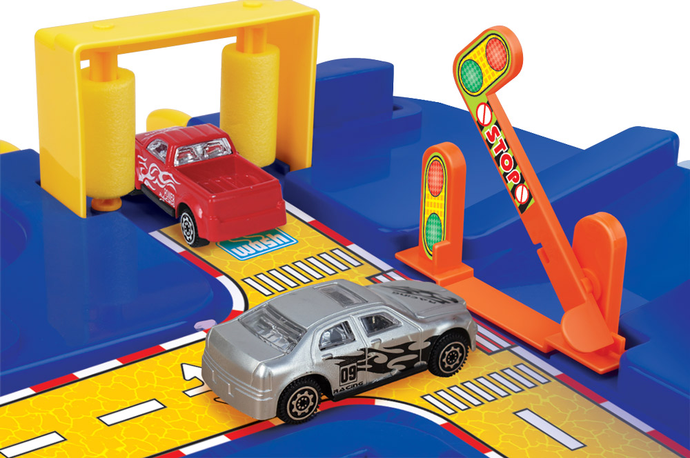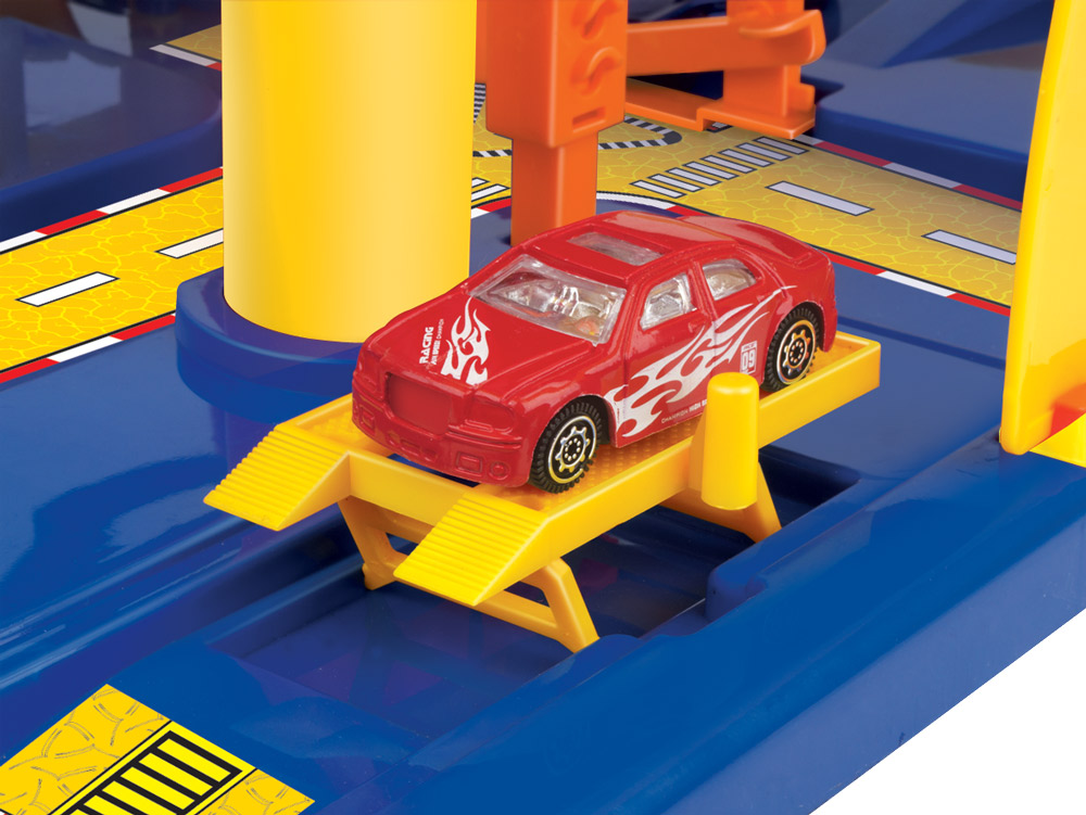 Farebná garáž Car Zone s dráhou a množstvom funkcií, ktoré nesmú chýbať v správnej garáži: