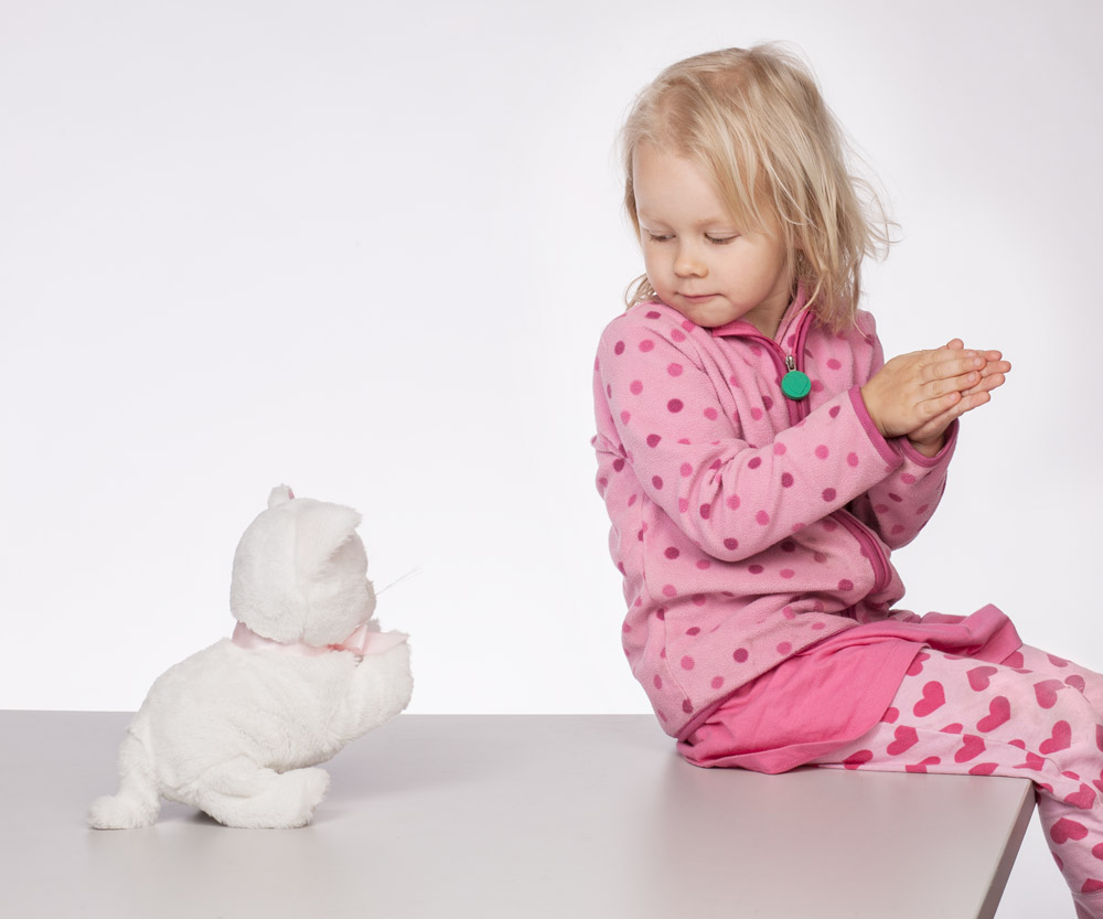 Interaktívne mačiatko je vyrobené z mäkkého plyšu a správa sa ako skutočné mačiatko! Mačiatko stojí na zadných nohách, pohybuje labkami a vydáva mačacie zvuky. Reaguje na tlieskanie.