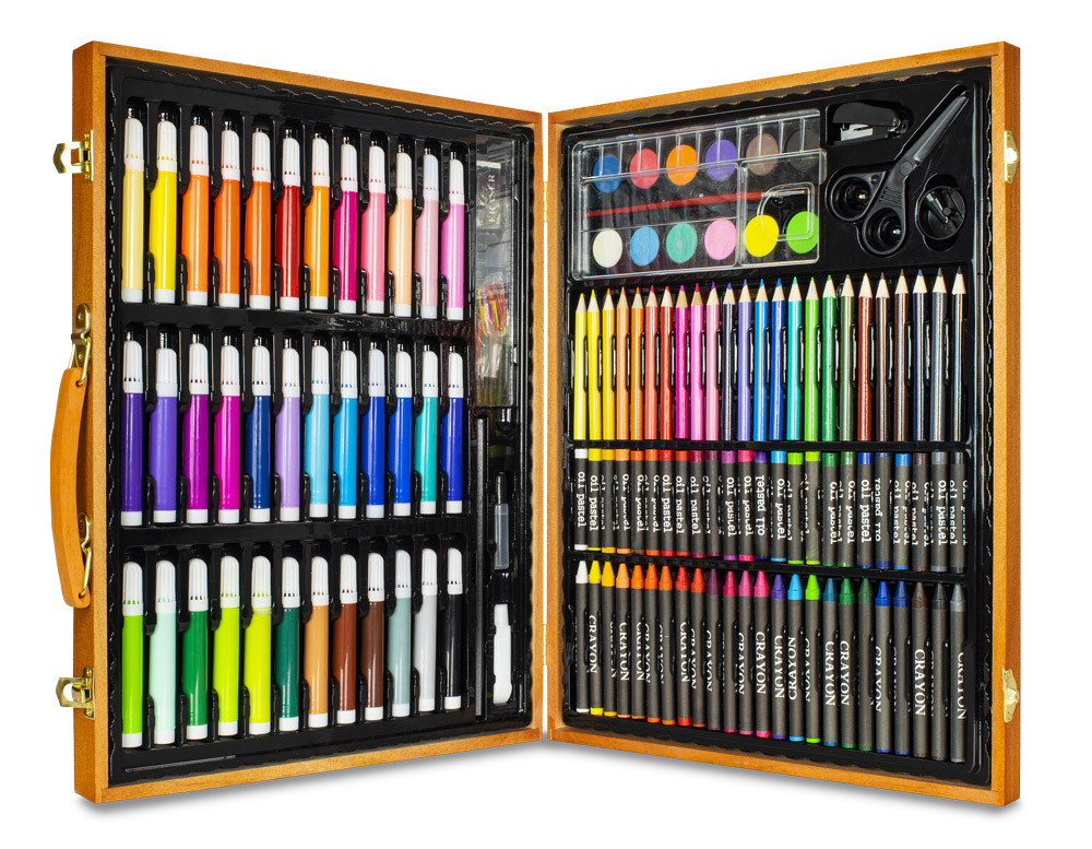 Výtvarná súprava pre začiatočníkov aj pokročilých umelcov. Vhodná ako krásny darček na kreatívne tvorenie. Kreatívna súprava je uložená v elegantnom drevenom kufríku - prenášanie obsahu je jednoduché a pohodlné.