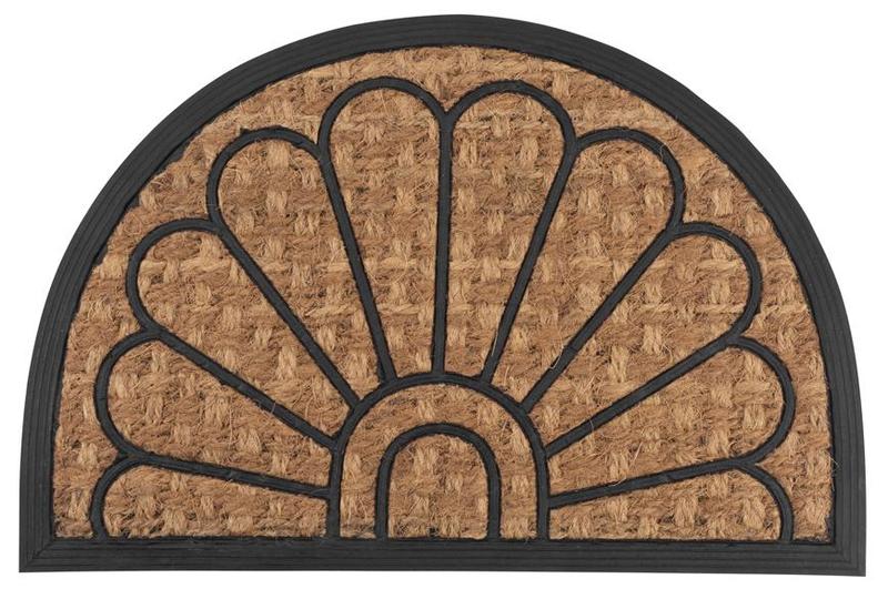 Odolná polkruhová rohož, ktorá zachytí všetky nečistoty a vlhkosť z vašich topánok. Táto praktická rohožka je určená pred vonkajšie dvere. Môžete ju použiť nielen v domácnosti, ale aj na chate alebo chalupe. Prepletená rohožka je vyrobená z kokosových vlákien. Jej štruktúra je vhodná na odstraňovanie hrubých nečistôt z obuvi. Gumené dno zaisťuje stabilitu rohože a nešmýka sa po podlahe.