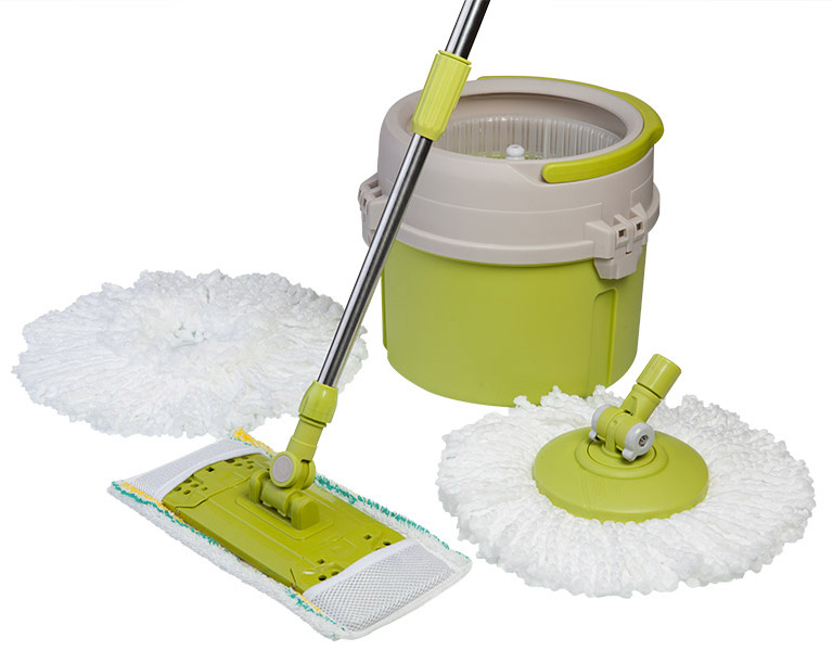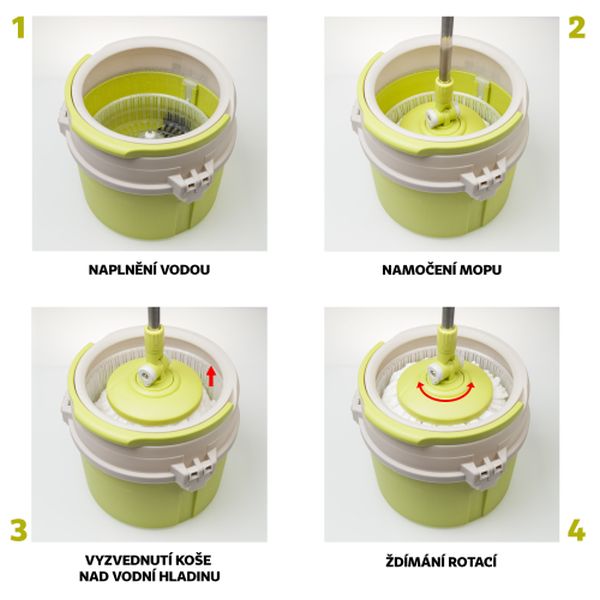 Rotačný mop DUO vám ušetrí čas a námahu. Inovatívny dizajn vedra umožňuje rýchle a kvalitné žmýkanie a dokáže odstrániť prebytočnú vodu. Pri žmýkaní sa nemusíte dotýkať špinavej vody. Žmýkanie a namáčanie s jednoduchým použitím, bez potreby elektrickej energie. Rotačný mop DUO ľahko odstraňuje prach a vodu, čím udržiava vašu podlahu dokonale čistú, suchú a bezpečnú. Rotačný mop DUO rýchlo a účinne čistí neprístupné miesta. Rotačný mop je ideálny na všetky typy stieraných podláh (dlažba, linoleum, plávajúce podlahy). Rotačný mop možno používať na mokro alebo na sucho, hlava mopu je vyrobená zo špeciálnych vlákien s vysokou absorpciou, ktoré ľahko pohlcujú prach a nečistoty.