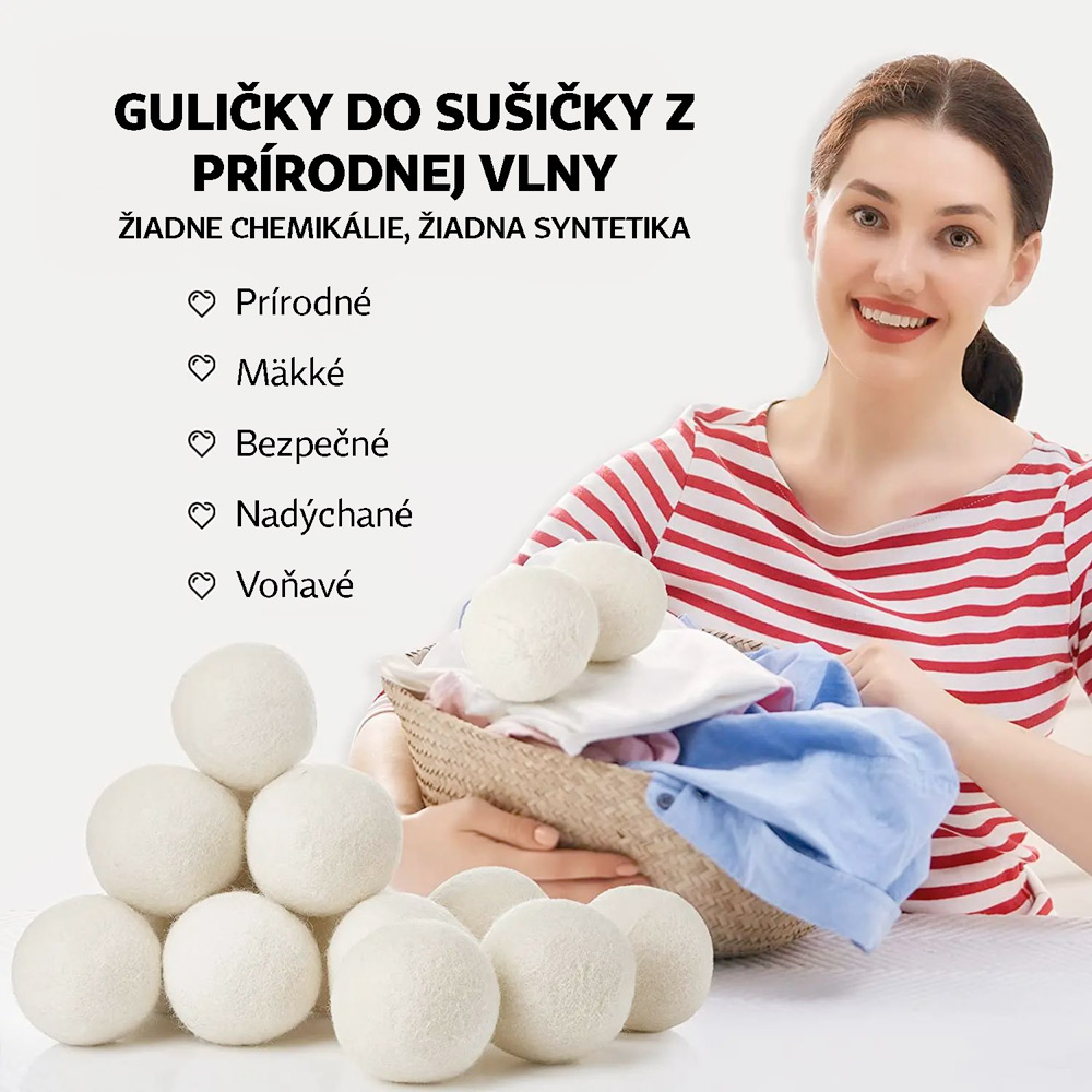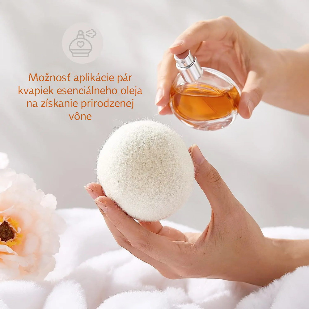Vlnené guličky do sušičky sú šetrnou a ekologickou náhradou za jednorazové utierky do sušičky. Bielizeň je možné prevoňať parfumom na bielizeň.