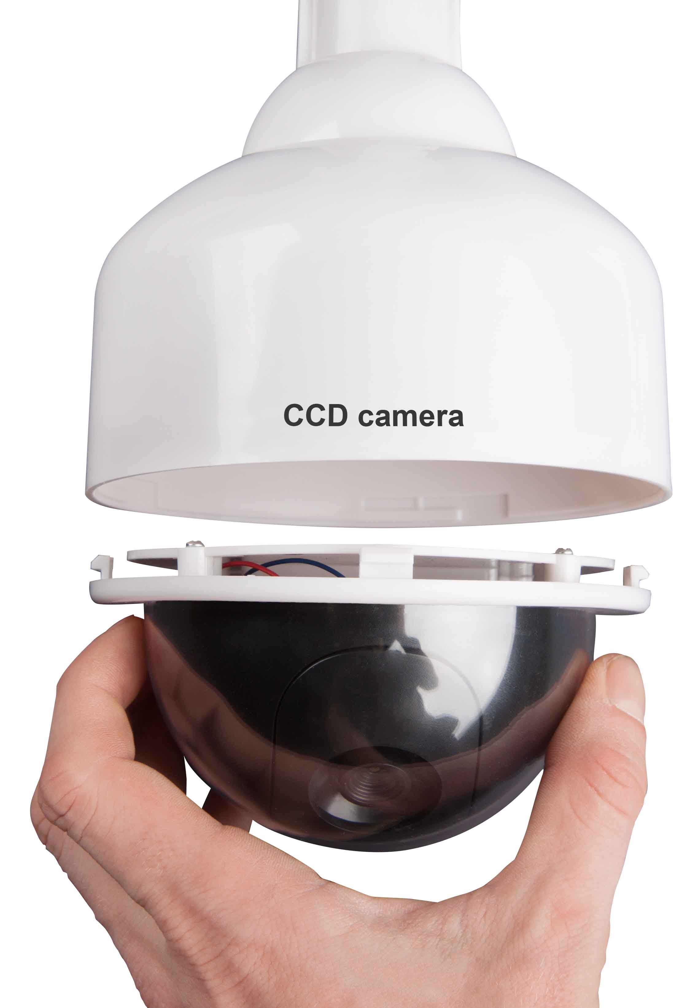 Imitácia bezpečnostnej kamery má veľmi realistický vzhľad, ktorý pomáha odradiť zlodejov, vandalov a zvedavých pozorovateľov. Integrovaná blikajúca LED dióda vytvára dojem skutočného monitorovania. Imitácia bezpečnostnej kamery Dome je vhodná na použitie v interiéri aj exteriéri.
