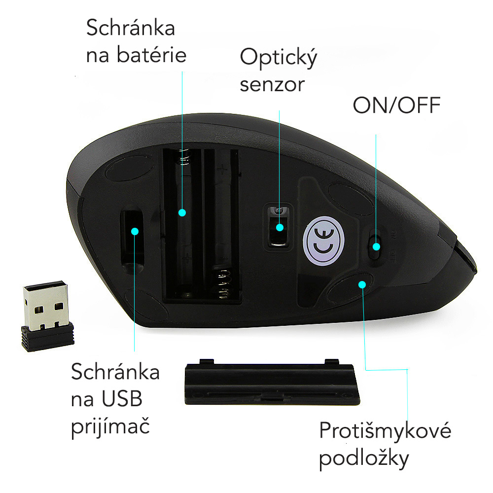 Balenie obsahuje: vertikálnu bezdrôtovú myš + prijímač USB