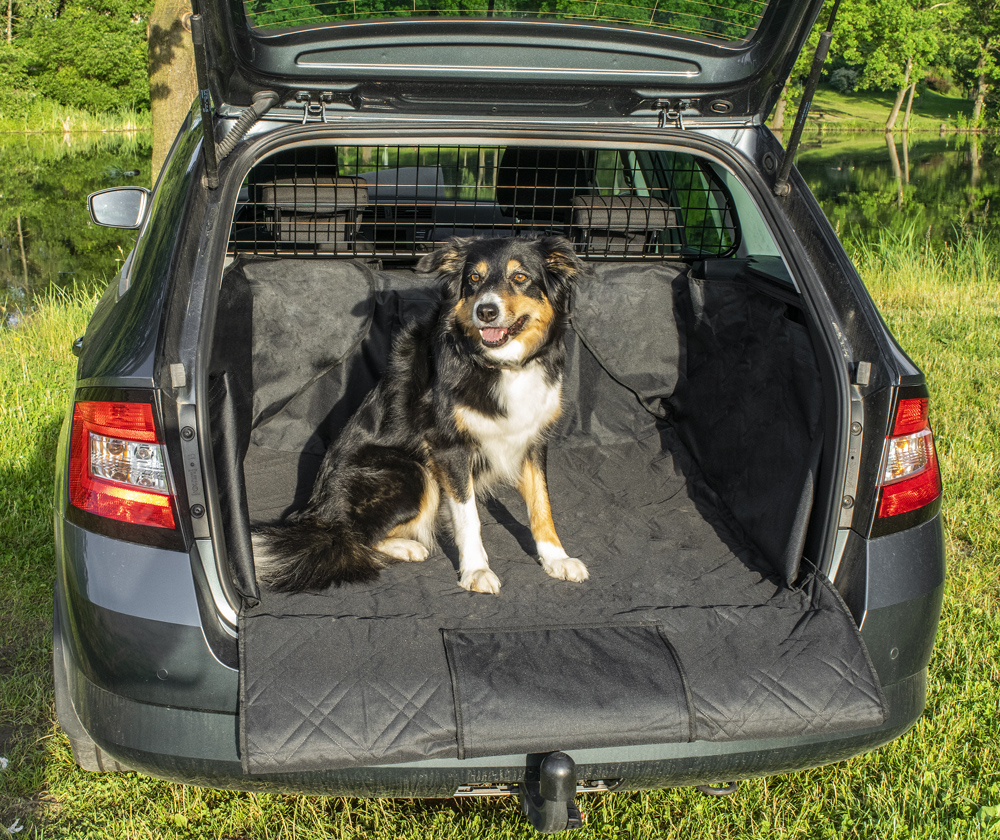 Ochranný kryt do kufra auta. Ochranný kryt do kufra auta je vhodný pre väčšie plemená psov, ktoré potrebujú viac priestoru na pohodlnú a tichú prepravu autom.