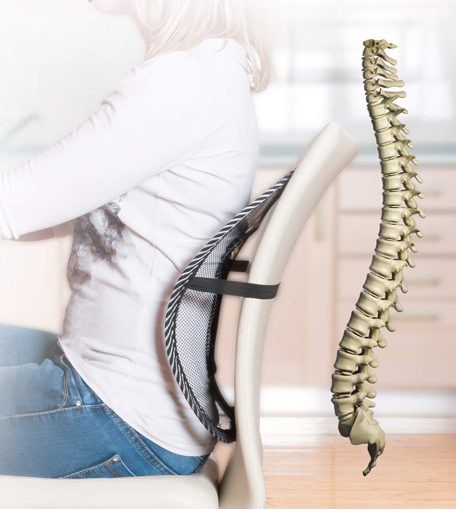Ergonomická podložka pod chrbát je vhodná do domácnosti, auta a najmä do kancelárie. Pomáha znižovať svalové napätie a zabezpečuje pohodlie v bedrovej oblasti. Praktický spôsob upevnenia pomocou gumičiek umožňuje jej pripevnenie na všetky typy stoličiek a kresiel.